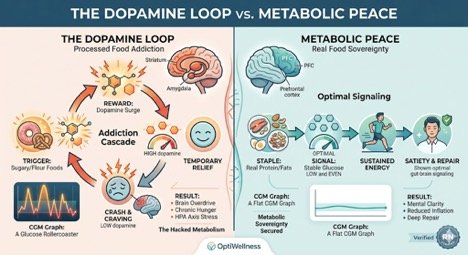 To truly achieve Metabolic Sovereignty, we must address the "invisible" driver of metabolic dysfunction: Biochemical Food Addiction.